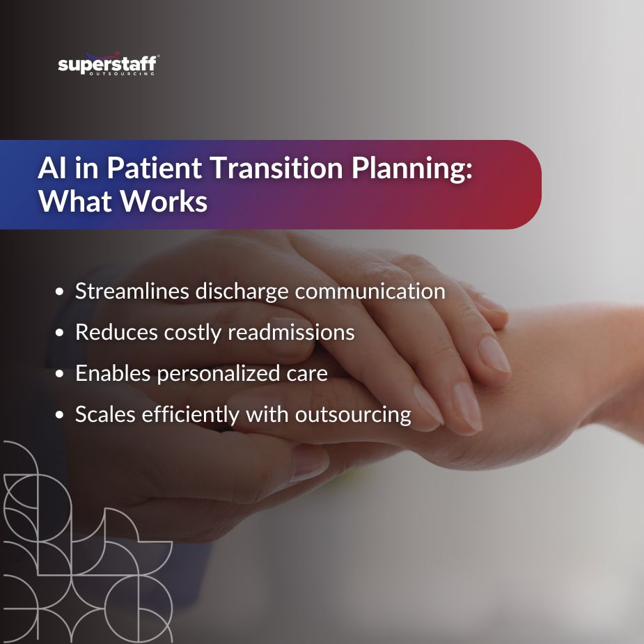 But no matter how advanced the technology, it needs skilled teams to interpret outputs, communicate with patients, and act on time-sensitive tasks. The success of AI in patient transition planning depends not just on software but on human follow-through. That’s where strategic outsourcing becomes an enabler of innovation.