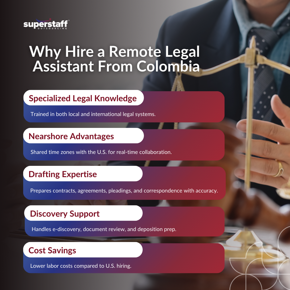 Colombian remote legal assistants deliver value across drafting, discovery, and broader legal processes. They combine specialized expertise, cost savings, time-zone advantages, cultural compatibility, and advanced security practices to support global legal needs.