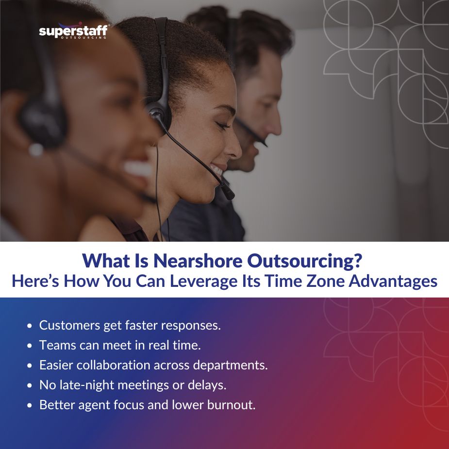 Nearshore teams help businesses rise to the challenge, offering faster responses during core hours, seamless collaboration between internal and outsourced teams, improved agent morale and continuity, and service that feels personal, human, and always available.