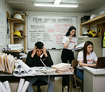 Construction firms operate in deadline-driven environments where coordination, budgets, and compliance directly affect profitability. Documentation, subcontractor follow-ups, procurement tracking, and administrative tasks often strain internal teams. Delays in support functions can slow project momentum. SuperStaff provides dedicated construction support teams that integrate into project and back-office operations.