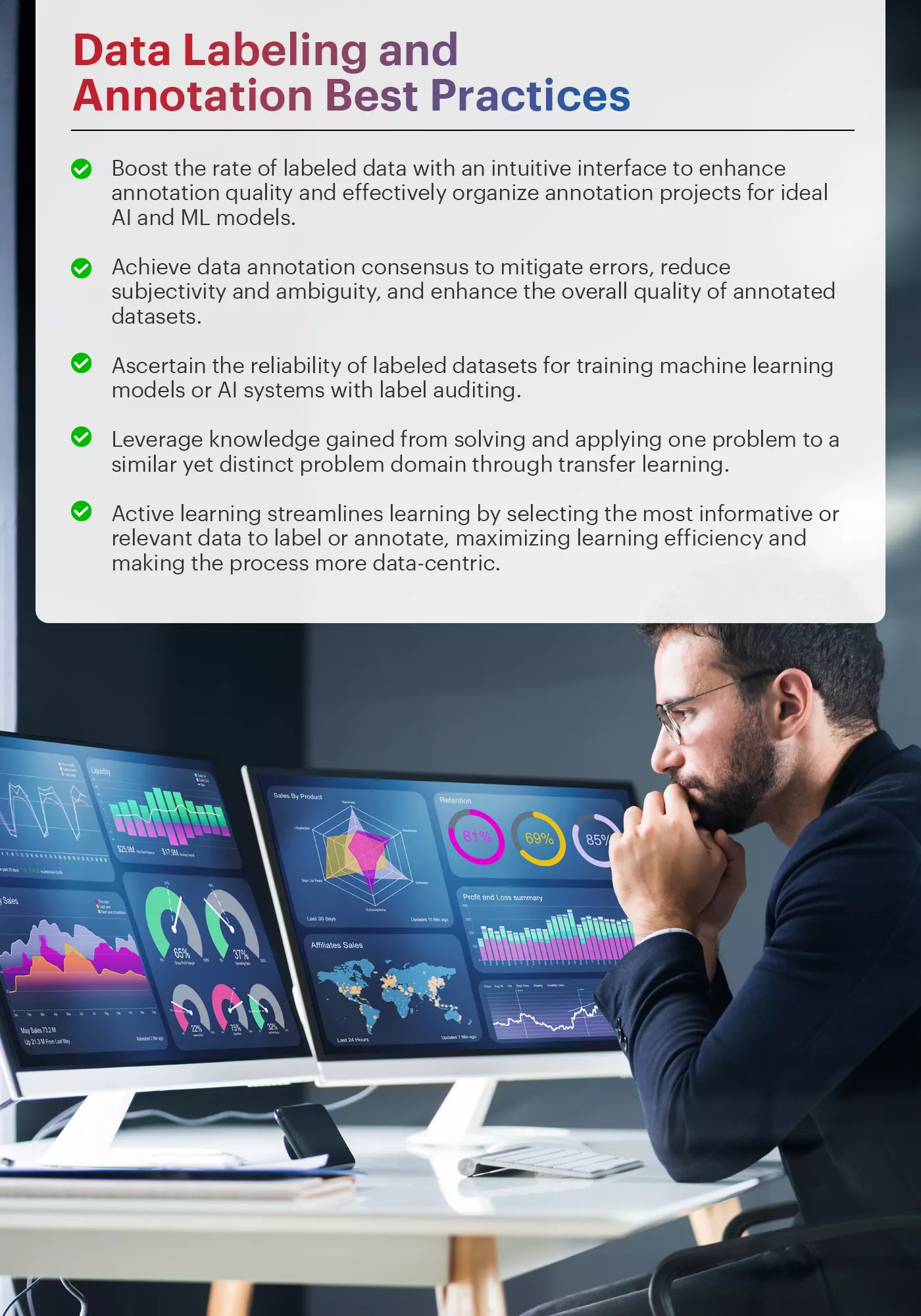 We now know that top-level AI and ML typically revolve around high-quality data, which can be achieved through data labeling and annotation. Nevertheless, maximizing the full potential of human-annotated data demands adherence to certain best practices to enhance the quality, accuracy, and efficiency of data labeling and annotation.